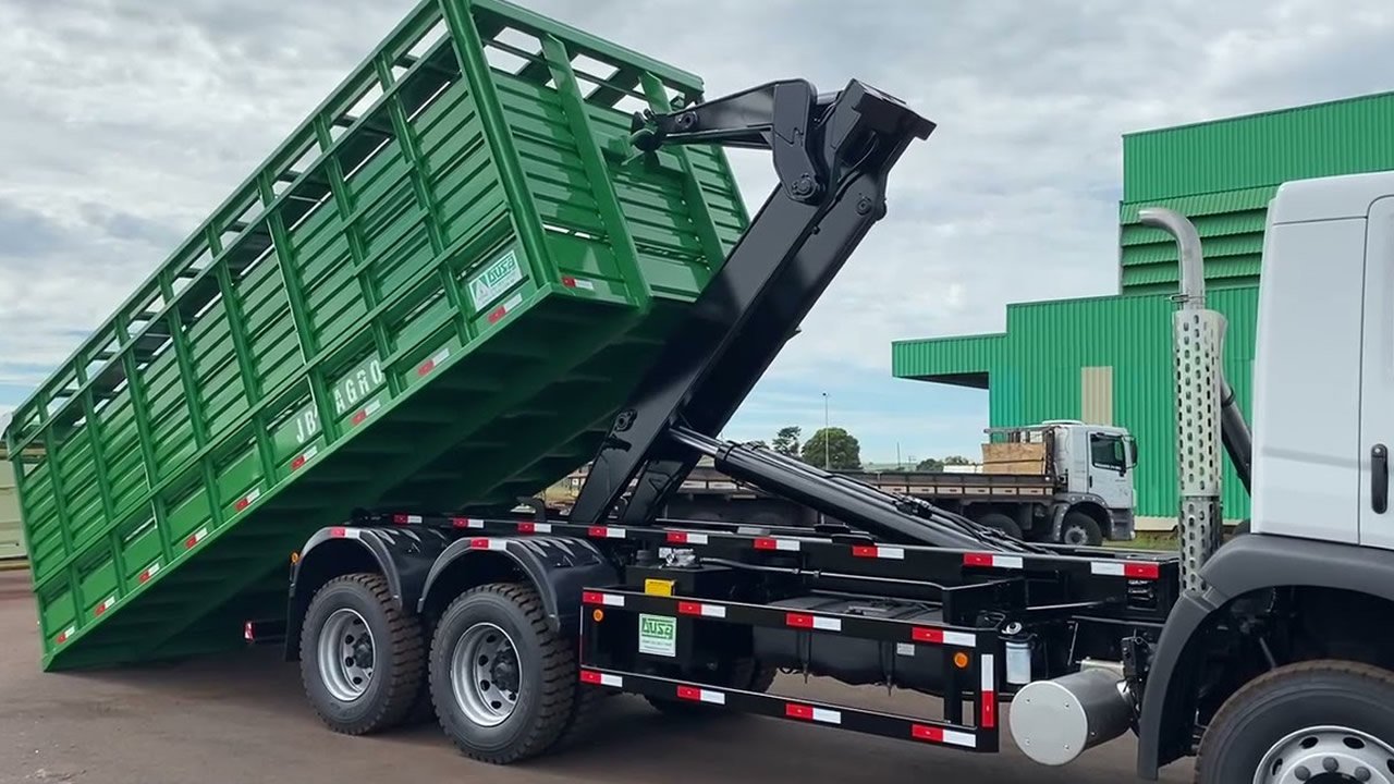 Caminhão Roll-On/Off - Equipamento de grande versatilidade e capacidade de carga, possibilitando transporte de uma gama de equipamentos.